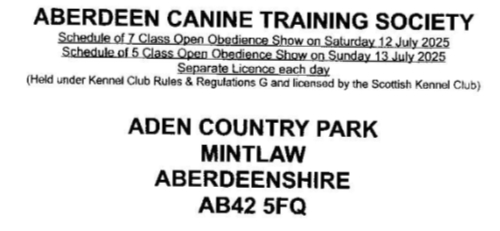 New schedule - Aberdeen Canine Training Society (obedienceuk) 23/05/2025 03:05 I've just uploaded the schedule for the Aberdeen Canine Training Society, 2 x Open, 12th & 13th July 2025. Thanks to Alison Robertson. ![]() |