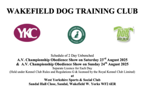 New schedule - Wakefield DTC (obedienceuk) 05/06/2025 08:06 I've just uploaded the schedule for Wakefield DTC, 2 x Championship, 23rd & 24th August 2025. Thanks to Sue Bean. ![]() |