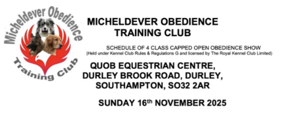 New schedule - Micheldever Obedience Training Club (obedienceuk) 23/05/2025 09:05 I've just uploaded the schedule for the Micheldever Obedience Training Club, 2 x Open, 13th & 14th September 2025. Thanks to Rebecca Coleman. ![]() |
