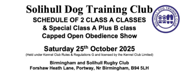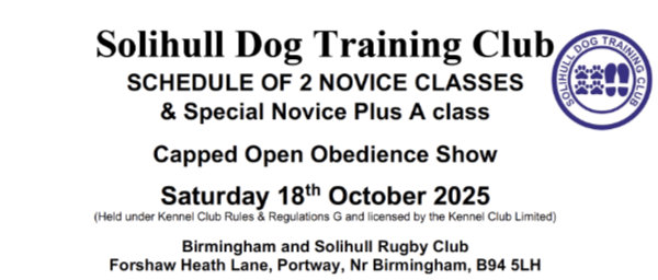 New schedule - Solihull (2xNov & Spec NovA) Capped (obedienceuk) 07/09/2025 10:09 I've just uploaded the schedule for Solihull DTC Capped Show (2 x Novice & Special Novice Plus A Class) on 18th October 2025. Thanks to Rebecca Coleman. ![]() |